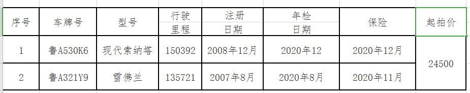 6月30日濟(jì)南現(xiàn)代索納塔、雪佛蘭轎車拍賣公告