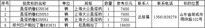 12月16日山東威海煙草有限公司桑塔納、帕拉丁等汽車4輛拍賣公告
