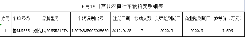 5月16日山東莒縣農(nóng)商行別克汽車一輛拍賣公告