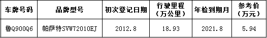 1月19日臨沂帕薩特汽車一輛拍賣公告