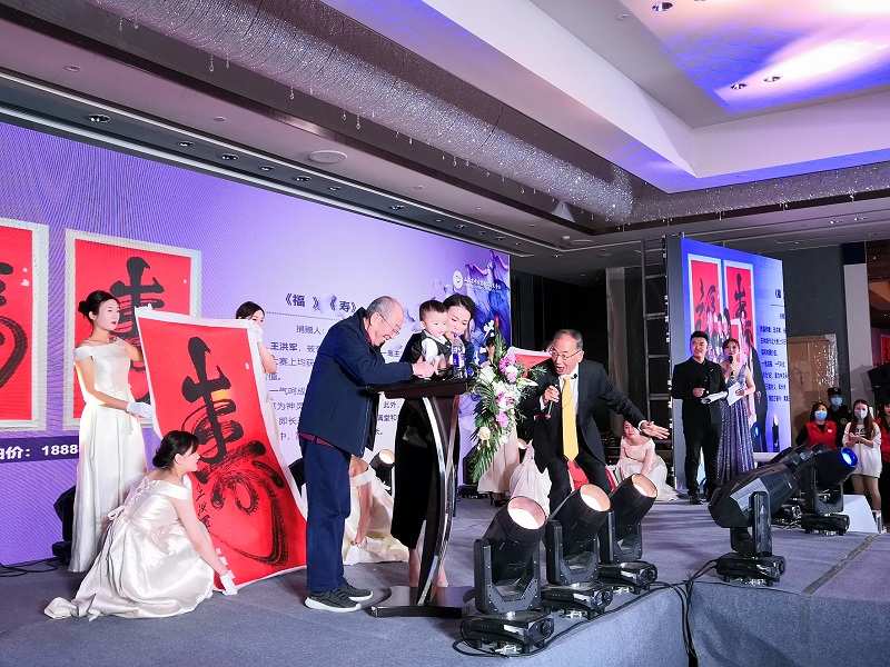 第一個(gè)拍品書法《?!?、《壽》,起拍價(jià)18888元,經(jīng)過競買人激烈競價(jià),最終以36000元成交。在拍賣師畢研挺主持下,由現(xiàn)場85歲的著名表演藝術(shù)家雷恪生聯(lián)袂年僅15個(gè)月的安德福小朋友在其監(jiān)護(hù)人母親周春衛(wèi)的協(xié)助下共同落槌《?!?、《壽》拍品以示成交。兩人同時(shí)聯(lián)袂落槌符合中國拍賣行業(yè)協(xié)會(huì)《公益拍賣規(guī)程》的相關(guān)規(guī)定。據(jù)悉,由85歲高齡的長者和僅15個(gè)月的兒童共同在公益拍賣中落槌成交創(chuàng)下世界紀(jì)錄。85歲高齡的雷恪生老先生熱心公益,多次捐贈(zèng)拍品、捐款、助學(xué),他代表了老一代引領(lǐng)下一代開展公益的典范;安德福小朋友在家長的帶領(lǐng)下參加公益活動(dòng),他象征著青少年一代將把中華慈善文化繼承、弘揚(yáng)下去,中華慈善文化代代相傳。