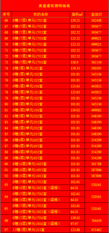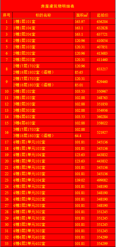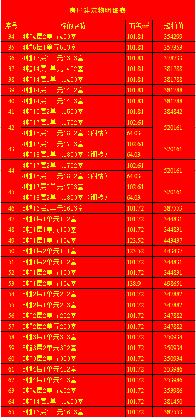 受蘭陵縣建安房地產(chǎn)開發(fā)有限公司委托,我公司定于2020年1月11日上午9時(shí),在蘭陵縣黨校二樓會(huì)議室(順和路西段路北)公開拍賣:蘭陵縣明珠新城房產(chǎn)112套及部分儲(chǔ)藏室。房產(chǎn)面積64.03-163.69㎡不等(其中18套房產(chǎn)與上層閣樓整體拍賣);儲(chǔ)藏室面積6.28-13.02㎡不等;單套拍賣。競(jìng)買保證金:房產(chǎn)5萬元/套,儲(chǔ)藏室1萬元/套。請(qǐng)微信掃描本公告下方二維碼,關(guān)注“光彩銀星拍賣”公眾號(hào),查看拍賣標(biāo)的詳細(xì)清單。